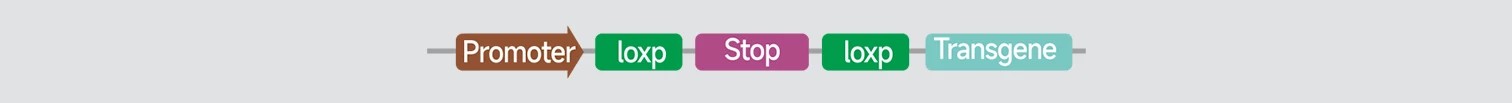 将构建的广泛表达启动子-loxp-stop-loxp-转基因载体通过显微注射制备组织特异性转基因大(小)鼠模型,转基因在正常情况下并不表达,只有与相应的组织特异性表达Cre/CreERT2小鼠杂交后,因Stop终止序列在特定的组织中被去除,从而达到转基因在诱导性/特定组织中特异性表达的目的。