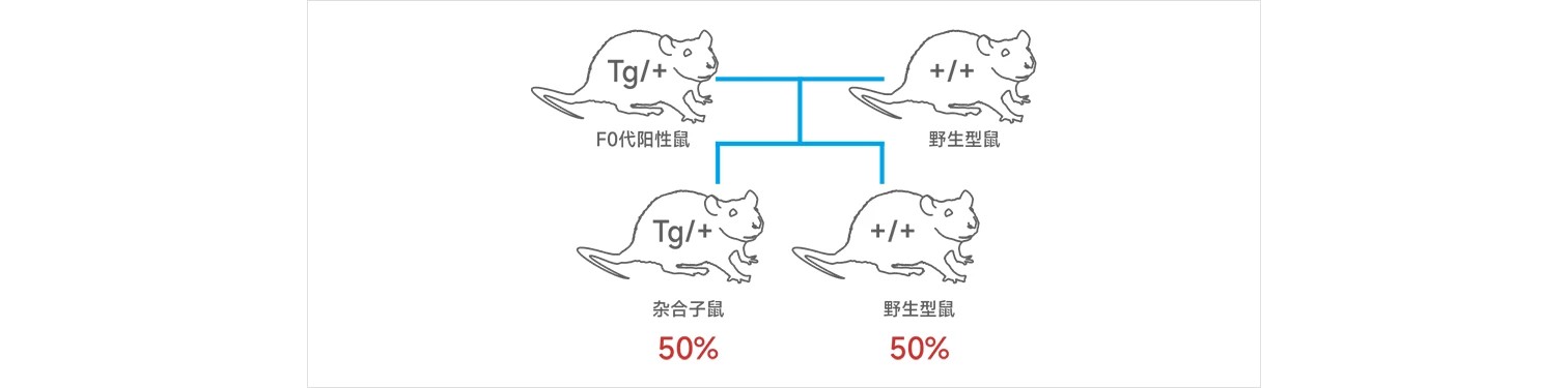 3. 对交配获得的F1代小鼠进行基因型鉴定,理论上,F1代小鼠中有50%为转基因杂合子小鼠,50%为野生型小鼠。